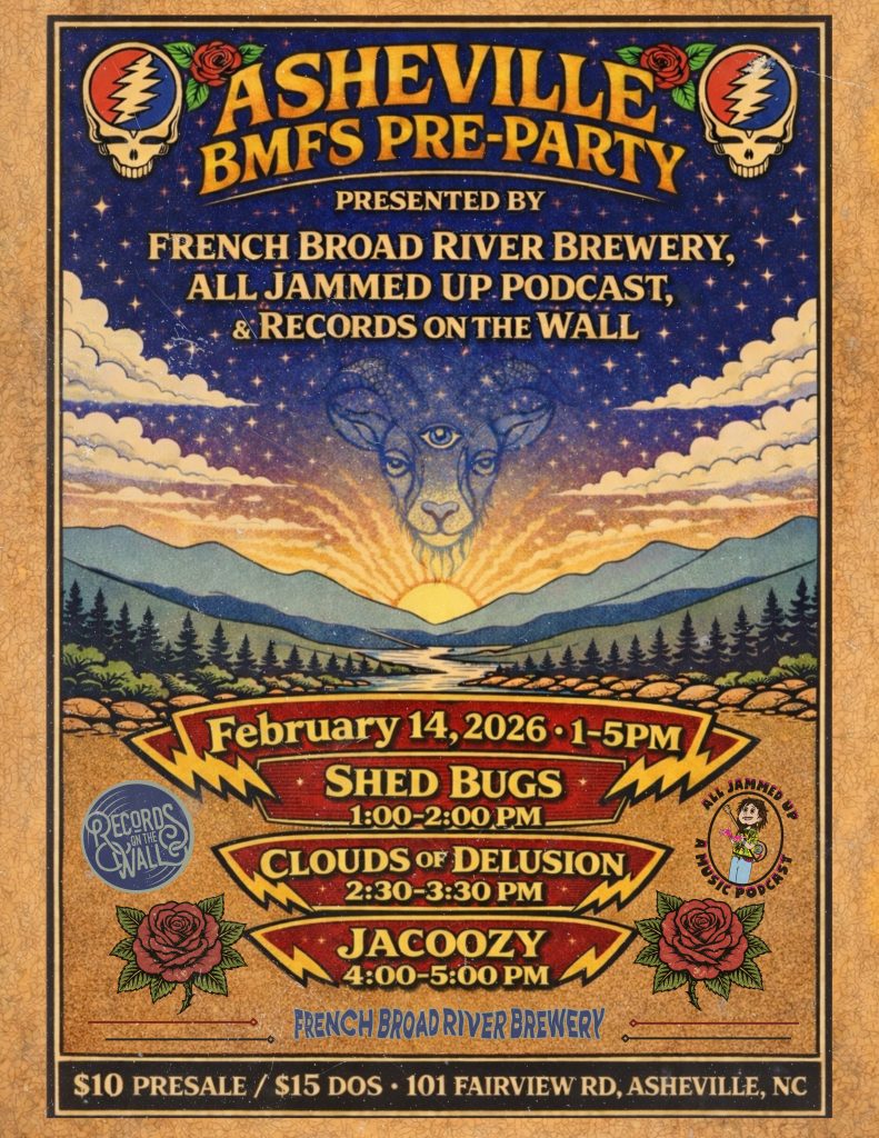 Check out the event page and get tix here: https://www.frenchbroadbrewery.com/events/asheville-bmfs-pre-party-presented-by-french-broad-river-brewery-all-jammed-up-podcast-and-records-on-the-wall/